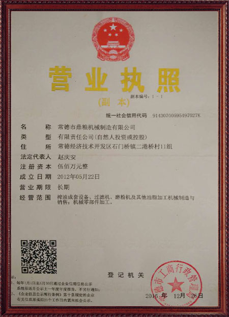 企業(yè)堅(jiān)持“質(zhì)量、口碑就是我們的生命”的原則,嚴(yán)格執(zhí)行質(zhì)量標(biāo)準(zhǔn)檢驗(yàn)體系。生產(chǎn)的"鼎糧"牌系列產(chǎn)品,產(chǎn)品質(zhì)量?jī)?yōu),性價(jià)比高,深受廣大新老客戶的青睞,通過(guò)了各級(jí)部門的鑒定認(rèn)可,立式、臥式液壓榨油機(jī)均榮獲農(nóng)機(jī)推廣證。